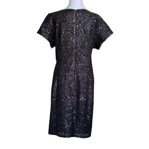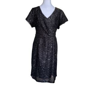 SLNY Black Sequin V Neck Short Sleeve Knee Length Cocktail Event Dress Sz 18 W