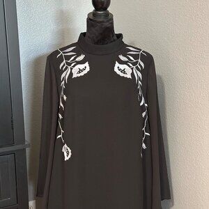 SLNY Dress Size 16W Black Mock Neck White Floral Embroidery Long Sleeve Formal