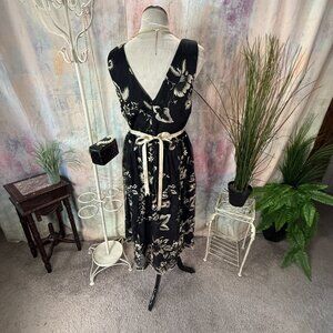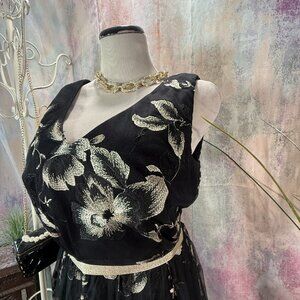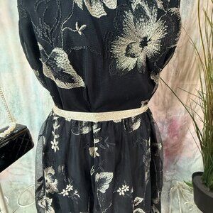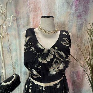 ๐SLNY Elegant Semi Formal Event- Cocktail - Floral Embroidered Mesh Midi Dress