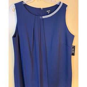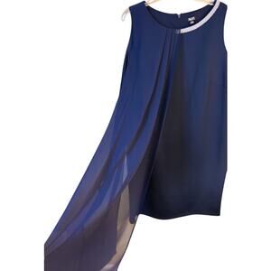 SLNY Fashions Navy Sleeveless Sheath Dress with Chiffon Overlay Size 18W NWT