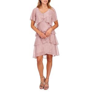 SLNY Fashions Tiered Shimmer Shift Dress - Faded Rose Size 14