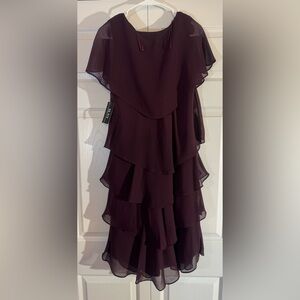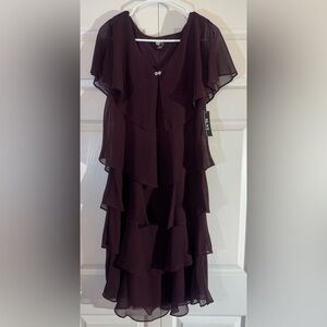 SLNY High Low Sundress with Flutter Sleeves in “Fig” Size 10P
