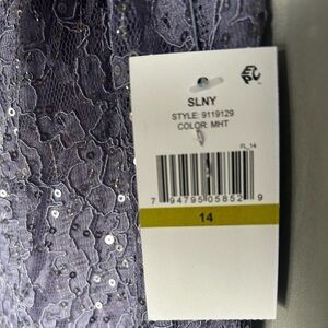 Chic lavender midi dress with sparkling sequins. Features short sleeves and a round neckline. Ideal for elegant events.