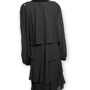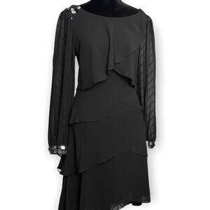 SLNY Long Sleeve Layered Ruffle Knee Length Dress Women's 10 Black Beaded NEW