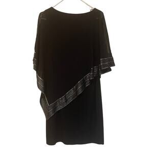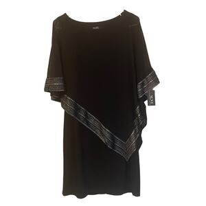 SLNY Metallic-Trim Capelet Sheath Black Dress New Size 4