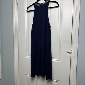 SLNY Midi Dress Womens 14 Dark Navy Blue Embellished Halter Sleeveless Party NWT