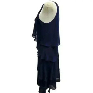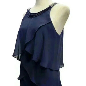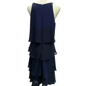 SLNY NAVY BLUE TIERED SLEEVELESS HALTER COCKTAIL DRESS ZIP UP BACK SIZE 6