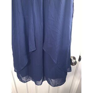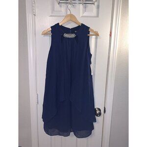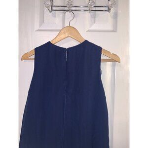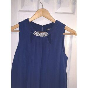 SLNY Navy Blue Sleeveless Cutout Pearl Neck Sheer Overlay Shift Dress Size 6