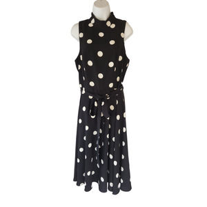 SLNY SL Fashions NY Polka Dot Belted Sleeveless Midi Dress 12