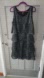 SLNY Silver & Black Ruffled Tiered Cocktail Dress Sz. 16