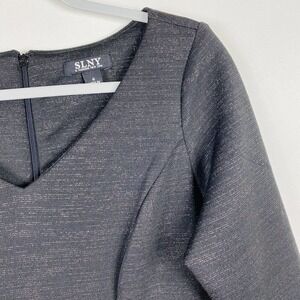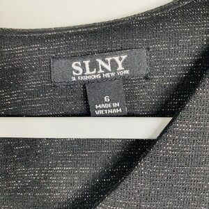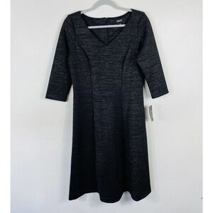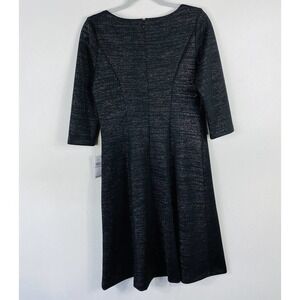 SLNY Size 6 Short Sleeve Tea Length Fit and Flare Dress Black Metallic