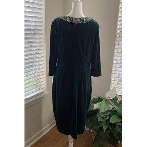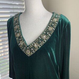 SLNY Velvet Gold Beaded Rhinestone Dress Size 10 Hunter Green Holiday Christmas