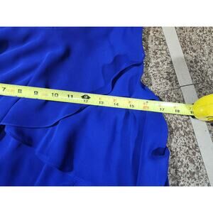 This SLNY dress is perfect for a night out dancing or a fun day exploring! The blue chiffon material is lightweight and airy, perfect for warmer weather. The tiered design adds a touch of whimsy and the knee-length cut is flattering and versatile. In excellent condition and ready to wear!