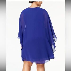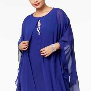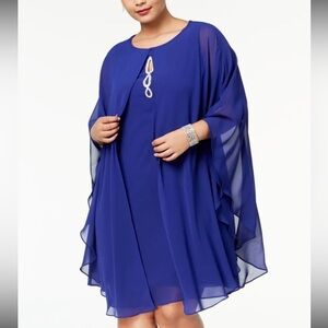 SLNY Women’s Formal Dress Plus Size 14W Blue Cape 2pc Shift Evening Gown NEW