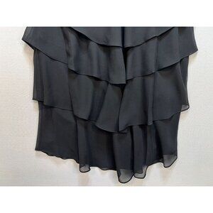 SLNY Womens Tiered Capelet Chiffon Dress Large Black Party Flutter Sleeve Midi