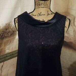 SLNY Navy Blue Sequenced Laced Cocktail Dress Size 8