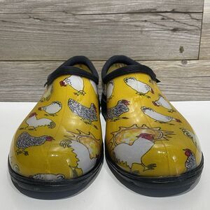 This is a new pair of Womens Sloggers Waterproof Garden Shoes in a Size 7 (no tags or box). These shoes are in new condition with no wear or damage. The shoes are yellow with an allover chicken & sun print. I encourage you to enlarge the photos to view small details. If you have any questions about these shoes, please ask!
