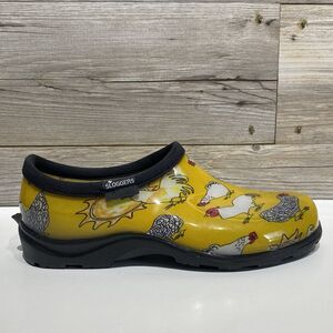 SLOGGERS Women’s Garden Shoes Yellow Chickens & Suns Print Waterproof Size 7