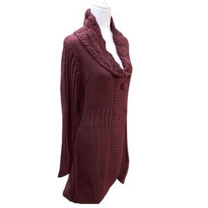 SLONI Long Length Cardigan Sweater Burgandy Maroon Wine Womens Sz S