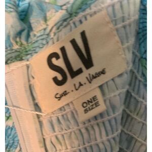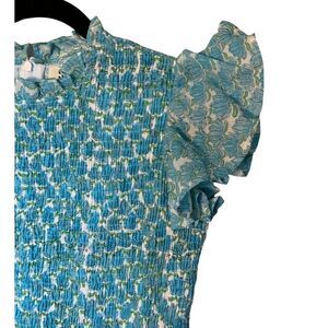 SLV Sur La Vague Dress One Sz Smocked Blue Floral Mini Ruffle Sleeve Cotton NWT