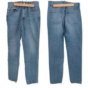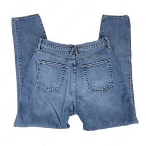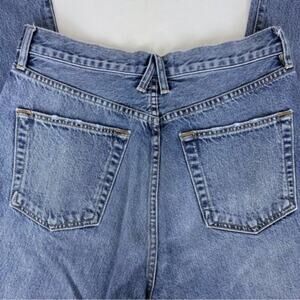 Jeans are 100% cotton in an easy to wear goes with anything medium blue wash and in good used condition. See closeup pics for tags & details.