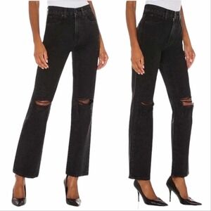 SLVRLAKE Black Distressed High Rise Straight Leg London Jeans
