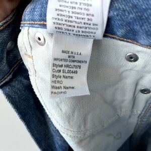 The "Hero" jean is a slim fitting, relaxed and refined denim jean from SLVRLAKE. Crafted from 100% cotton this silhouette is hand finished with a raw hem detail and SLVRLAKE signature antique nickel hardware. The pacific wash is a timeless indigo shade. Size 25.