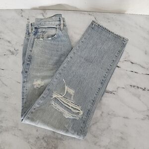 SLVRLAKE High Rise Straight Leg Distressed Light Washed Blue Jeans 26 Preowned