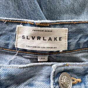 SLVRLAKE London High Rise Straight Ankle Denim Jeans. Features zip fly with button closure, 5-pocket styling. Color: Sweet Talk (Blue). Size: 30. Material: 100% cotton. Great preowned condition.