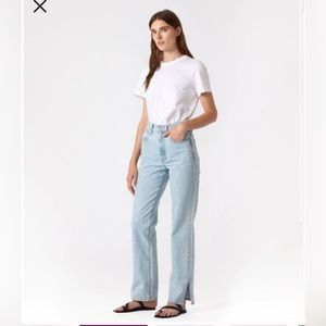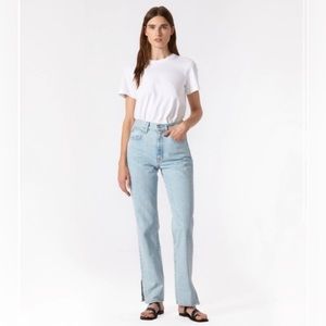 New With Tags SLVRLAKE London Split Jeans in Hard Luck Wash Size 31 LONDON is SLVRLAKE's most coveted jean. This signature style is designed to fit and flatter the feminine form visually elongating the leg with a straight leg silhouette. Outseam split. High rise. Straight leg. Belt loops. Five pocket construction. Zip fly with button closure. Approximate measurements: Waist 15"/Rise 13"/Inseam 31" 100% Cotton Made in USA Inventory # 129
