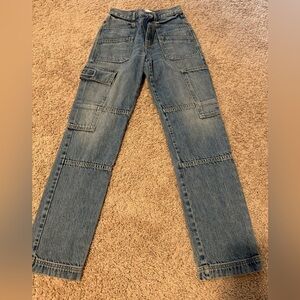 SLVRLAKE Savior Cargo High-Rise Straight Jeans Flats Blue 25 revolve