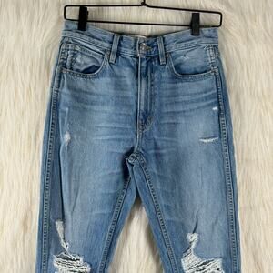 SLVRLAKE Virginia Slim Jeans Rolling Waters Blue High Waist Distressed Size 26