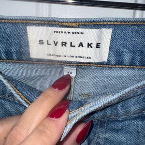 Experience timeless style with SLVRLAKE's blue straight jeans, crafted from premium denim for a versatile and comfortable fit. These jeans feature a classic design with subtle whiskering and fading details, making them perfect for any casual occasion.