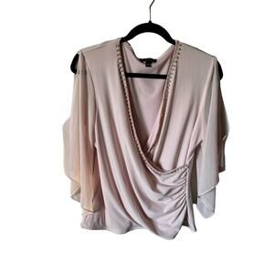 S.Levine Soft Baby Pink Cold Shoulder Rhinestone Blouse Top Women's Size Large