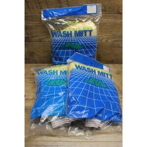 Vintage extra long life car wash detailing mitt. Pack of 3. Sealed, unopened. Due to vent holes, items appear to have some light debris inside packaging.