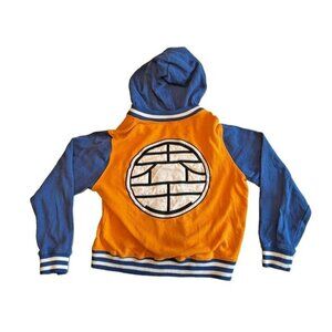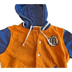 SM DRAGON BALL Z Anime Manga Orange Blue Hooded Button Up Varsity Bomber Jacket