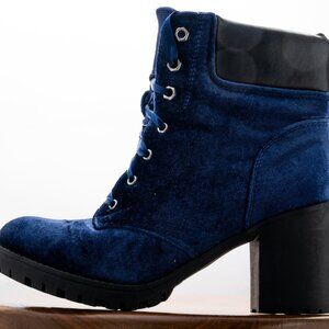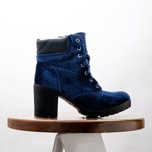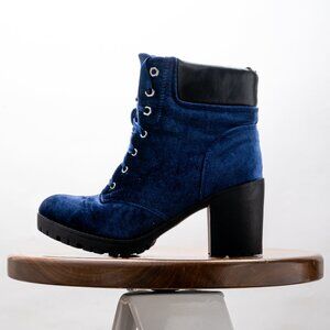 SM New York Faux Suede Blue Velvet Lace-Up Boots Womens Size 7