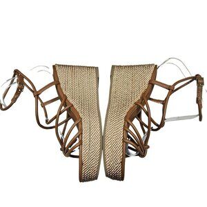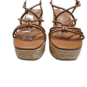 SM New York July Brown Wedge Heels Espadrille Sandals Straps Women 8M Man Made