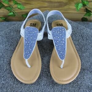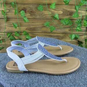 SM New York Women's Ellie T-Strap Blue Textile Sz 8 Medium Gently Used 2025