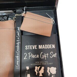 SM Steve Madden Crossbody Bag Card Case 2 PC Gift Box Set With Scarf Tan Brown