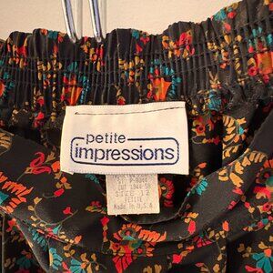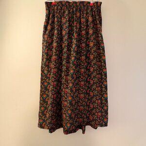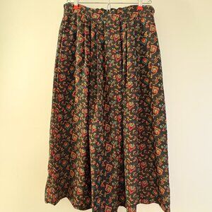 A vintage 80s-90s midi skirt in a great dark floral/paisley pattern, featuring hidden elastic waist and pockets. Very autumnal! Labeled a vintage size 12, it best fits a modern medium, but please consult measurements to ensure a good fit.