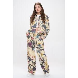 SM Wardrobe Botanical Print Button Down Denim Jacket
