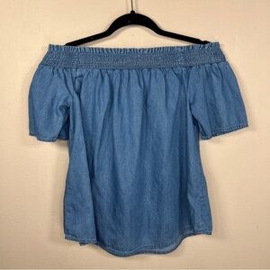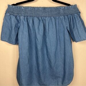 SMALL BLUE LYOCELL TOP BEACH LUNCH LOUNGE OFF SHOULDER PEASANT TOP