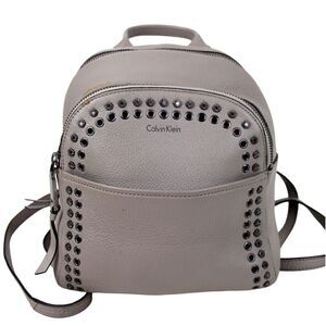SMALL CALVIN KLEIN LIGHT GRAY GENUINE LEATHER SHOULDER BAG BACKPACK HANDBAG TOTE
