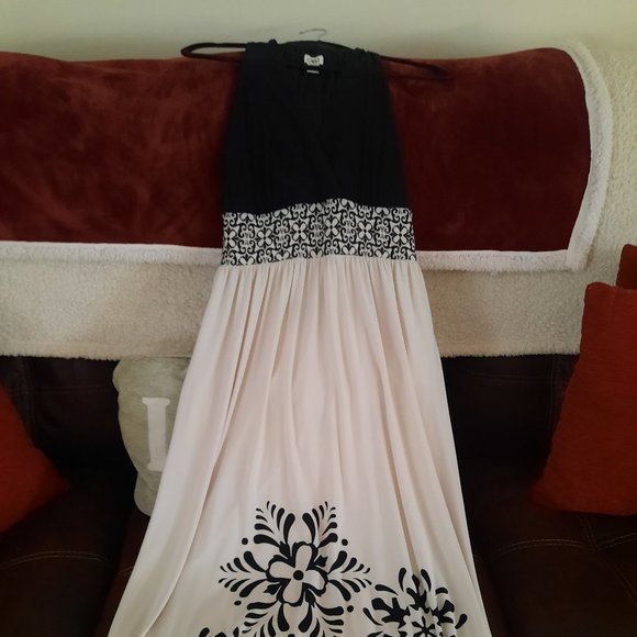 BEAUTIFUL BLACK AND WHITE DRESS WITH FLOWERS