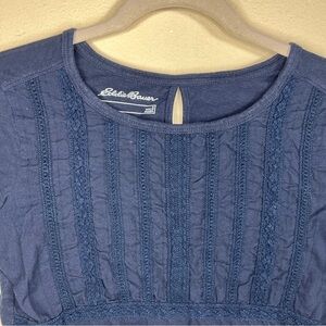 SMALL EDDIE BAUER DARK BLUE COTTON SHORT SLEEVE TOP EMBROIDERED ACCENT CASUAL