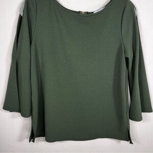 SMALL GREEN ENVELOPE OLIVE GREEN BLOUSE SLIT SLEEVE STRETCH