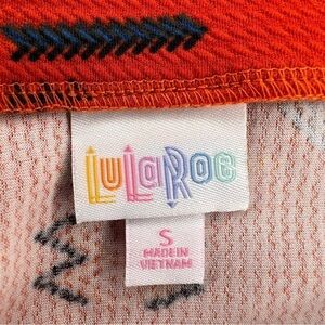 SMALL LULAROE RED ORANGE COLORFUL WESTERN SOUTHWESTERN PRINT STRETCH
