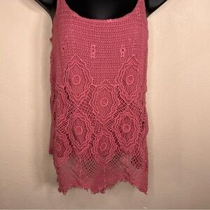 SMALL MAURICES MAUVE PINK BOHO LACE TANK SLEEVELESS STRETCH BOHOMIAN