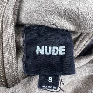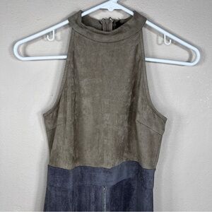 SMALL NUDE BRAND DRESS SLEEVELESS BEIGE GREY STRETCH FAUX SUEDE